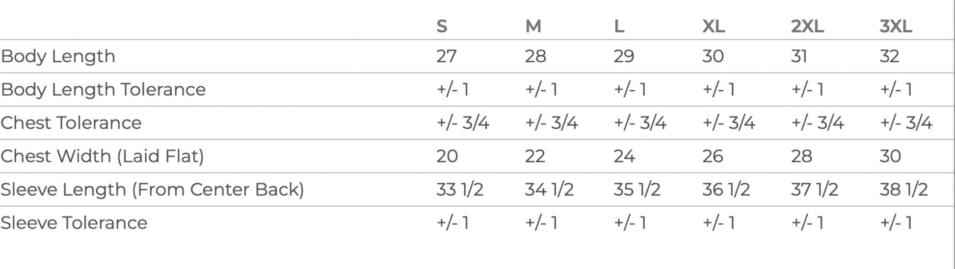 - Sizes: S, M, L, XL, 2XL, 3XL